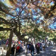 除了观赏众多的古树和寺院建筑外,潭柘寺周围的自然风光也是非常不错的。整个寺院被几座小山环抱,周围的山上树木茂密。每到秋天,山上的红叶遍野,不亚于香山等地,是北京地区观赏红叶十分不错的地方。
