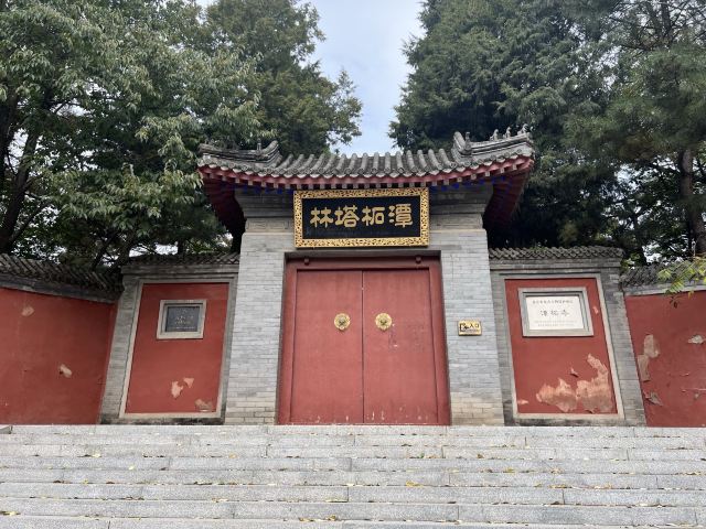 潭柘寺的正门位于南侧,在南侧寺外约300米处是上下两座塔林,这两座塔林常常被直接进寺参观的游客忽略,但塔林处风光也十分不错,不妨在进寺前参观一下。塔林是寺内圆寂的大师存放舍利的骨灰塔组成的,潭柘寺的塔林以灰白两色为主,处在僻静的树林之间,在此散步参观十分安静,感觉古朴安然,也可以拍出非常不错的照片。