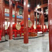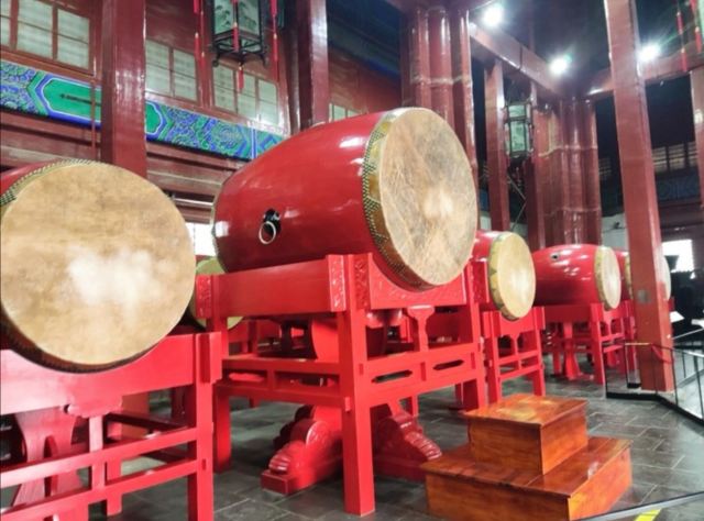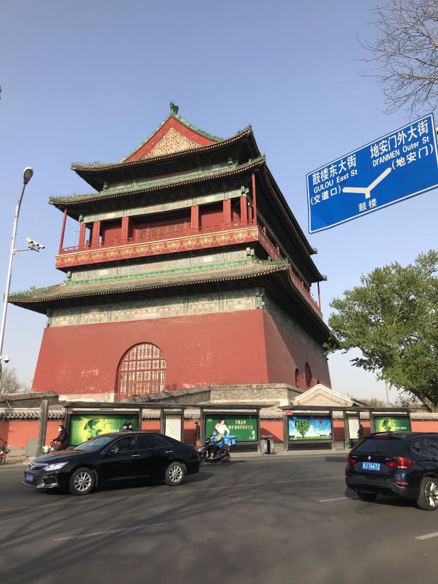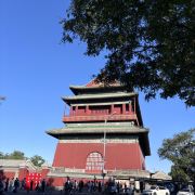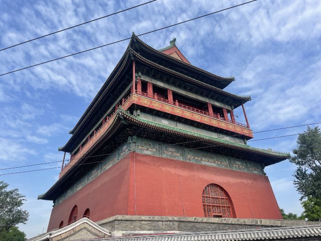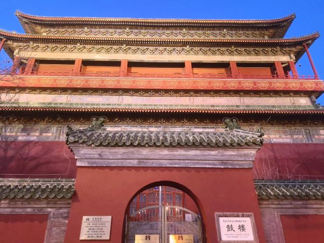 5分 超棒鼓楼是北京最高和形体最大的古建筑之一,是留存至今最重要的古代标志性建筑,也是研究明、清两代建筑形制、建筑构造、建筑艺术和冶炼、铸造、施工等多方面的珍贵资料。北京鼓楼坐北朝南,占地面积约7000平方米,四周砌有矮砖墙,门前有石狮一对,楼通高46.7米,通面宽34米,通进深22.4米。鼓楼位于东城区西北部,北京中轴线的北端。东邻草厂胡同,西靠旧鼓楼大街,南临地安门外大街,北依钟楼。北京鼓楼为古代京城的报时台,始建于元代至元九年(1272年),原名齐政楼,后毁于火。齐政,取齐七政(日、月、金、木、水、火、土星)之意。当时建楼于元大都中心。我们现在看到的鼓楼是清乾隆时重建,嘉靖年间重修,1984年政府拨款重修的。北京鼓楼由台及楼两部分组成,楼基称台,台高4米,台的南北侧各有券门三座,左、右侧各有券门一座,台内为十字形券洞,系无梁式砖石结构。北京鼓楼形制为歇山顶,灰筒瓦、绿琉璃剪边屋面,三重檐结构。台东西长56米,南北宽33米。其东北隅有一北向小门,内有69级石梯,由此可达楼上。楼为木结构,分二层。鼓楼二层大厅中原有更鼓25面,1面大鼓(代表一年),24面群鼓(代表二十四个节气)。仅存一面残破的主鼓为清朝末年使用,牛皮鼓面上的划痕是八国联军入侵北京城时刺刀所划。现有25面更鼓是根据清朝嘉庆年间尺寸仿制的。鼓楼南侧的大街明朝称鼓楼下大街,清朝称鼓楼大街,现在是地安门外大街。这条大街两侧分布着密集的胡同网络,如网红景点南锣鼓巷就在地安门外大街东侧。这条大街挺热闹,有地安门百货商场,有众多餐馆和小商铺,护国寺小吃分店、清真餐馆望德楼均在这里。现在鼓励一代恢复历史原貌,开发旅游,著名的胡同游就是在这一带。