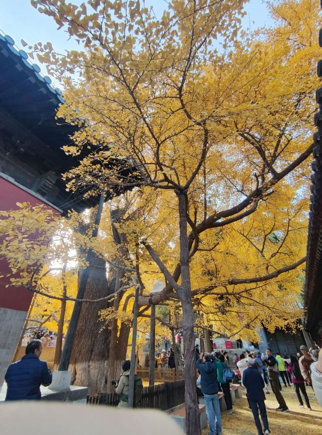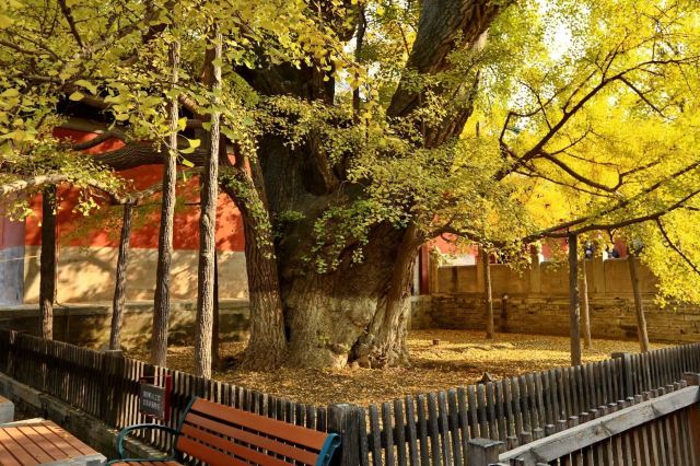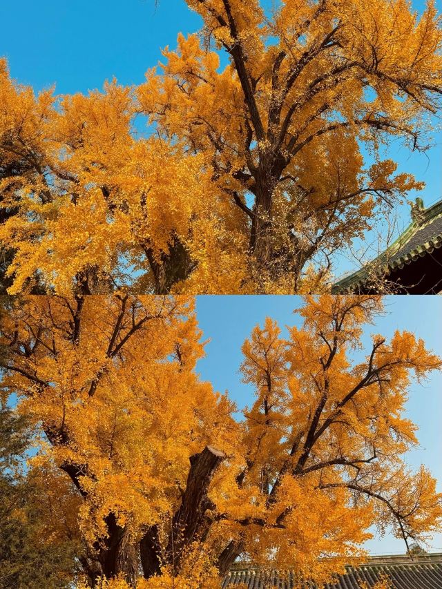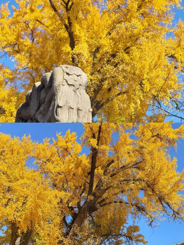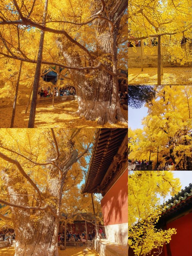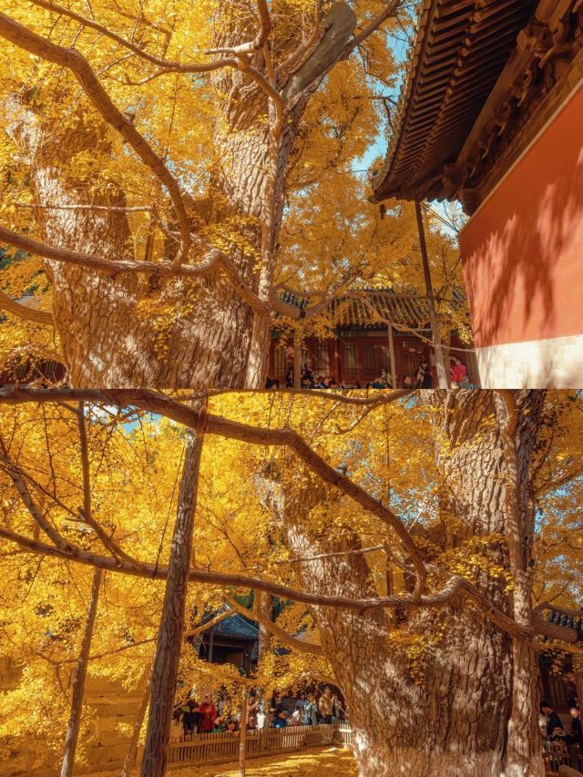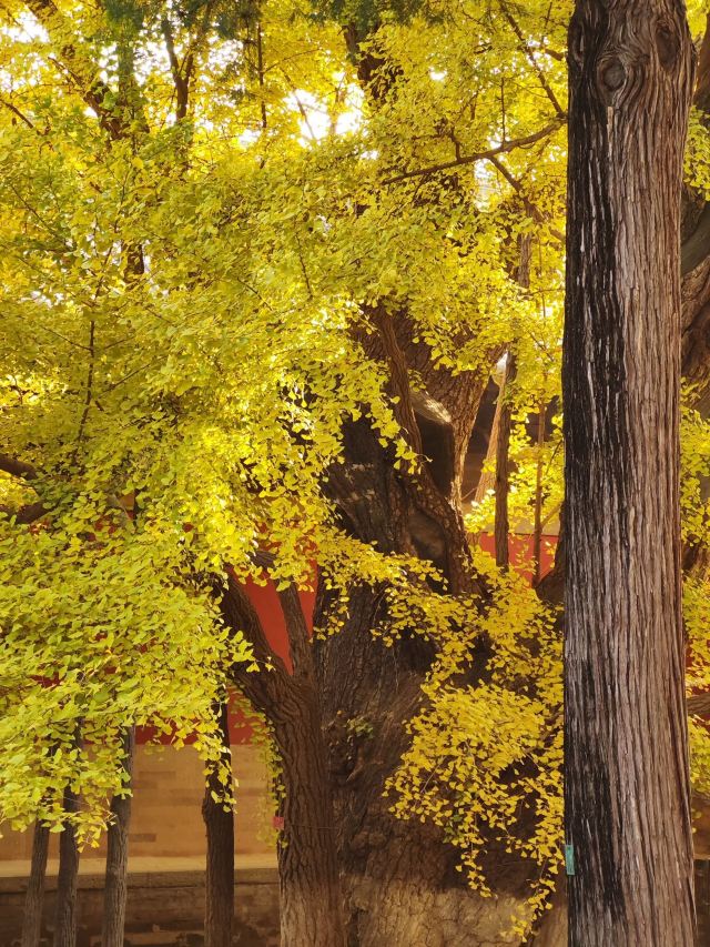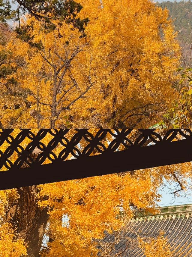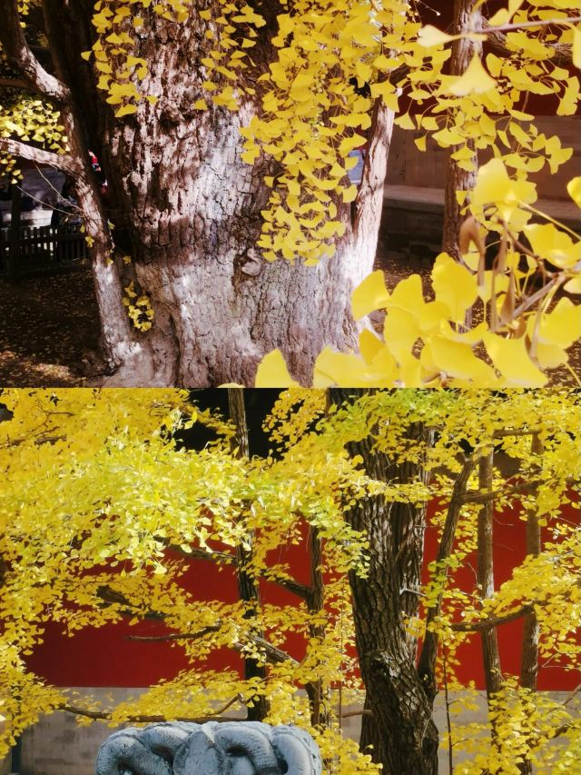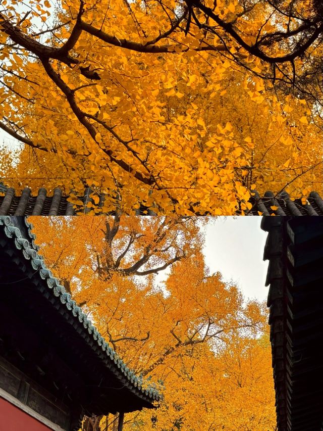 🌳环境:群山环抱中的大觉寺,林茂泉清,空气沁人心脾。古朴建筑红墙灰瓦,庄重尽显。秋季银杏成景,金黄叶片挂满枝头,随风舞动飘落,铺就金色地毯,与古寺建筑相互交融,构成绝美画卷。漫步树下或静坐庭院,能深切感受自然与人文的完美结合,宁静美好直抵心底。