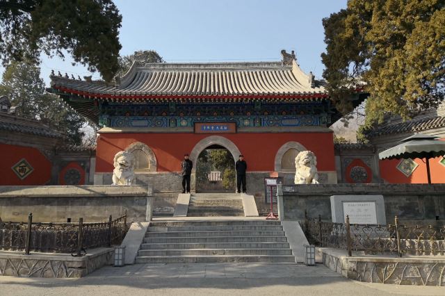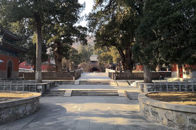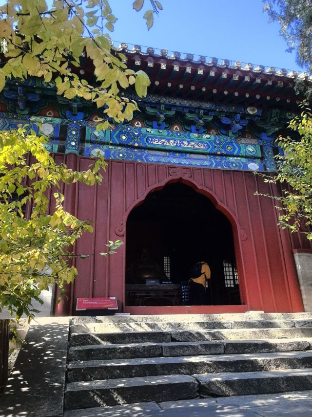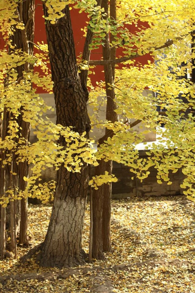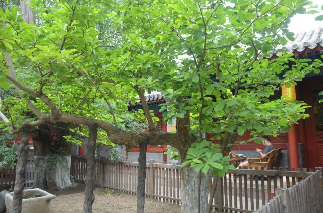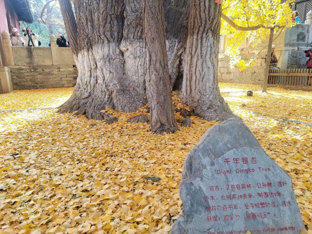 三进院正殿是无量寿佛殿,匾额书写“动静等观”是乾隆御笔。殿前北侧有一棵千年银杏树,长势旺盛。