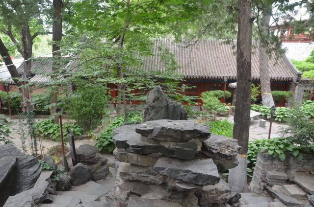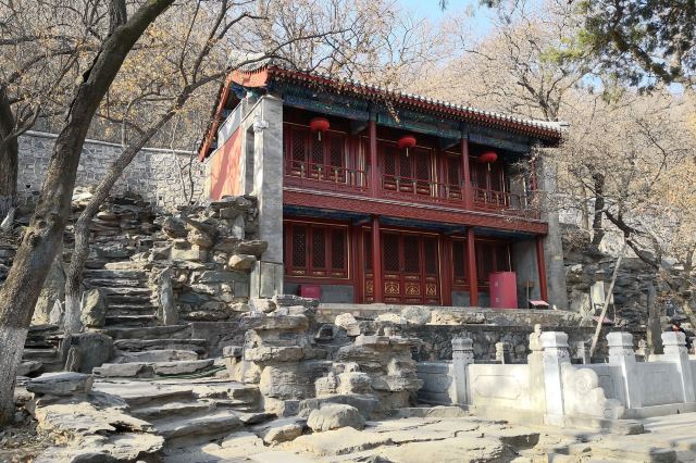 大觉寺依山而建,坐西朝东,主要建筑在中路,五进院落,南路是行宫,北路是禅房。