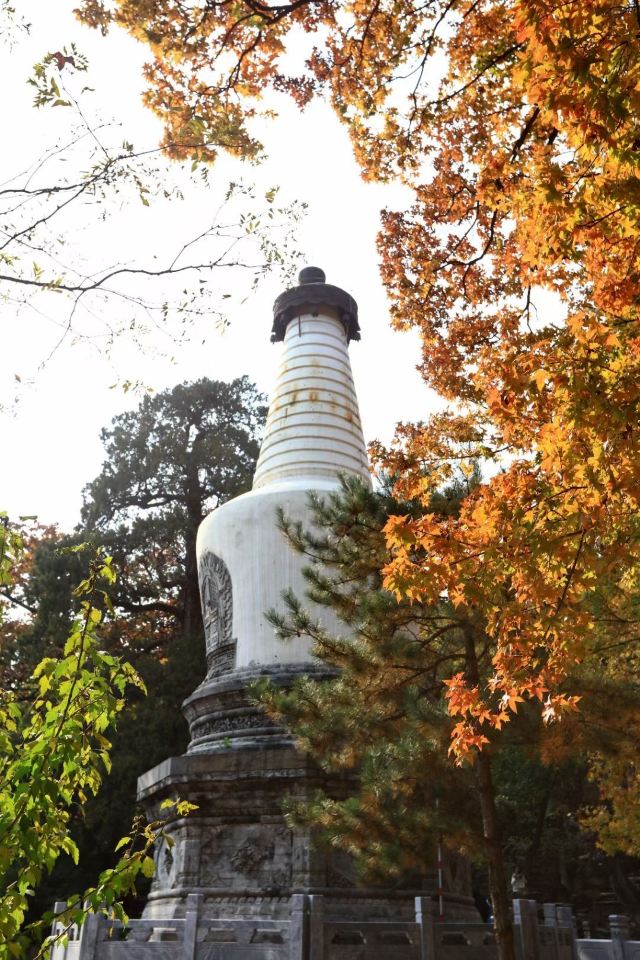 五进院是龙王堂,二层建筑,殿前正中有一庙巨大的白色伽陵舍利塔,是清雍正年间的大觉寺主持伽陵禅师的灵塔,他被雍正皇帝封为国师,佛学造诣很深。