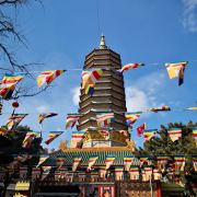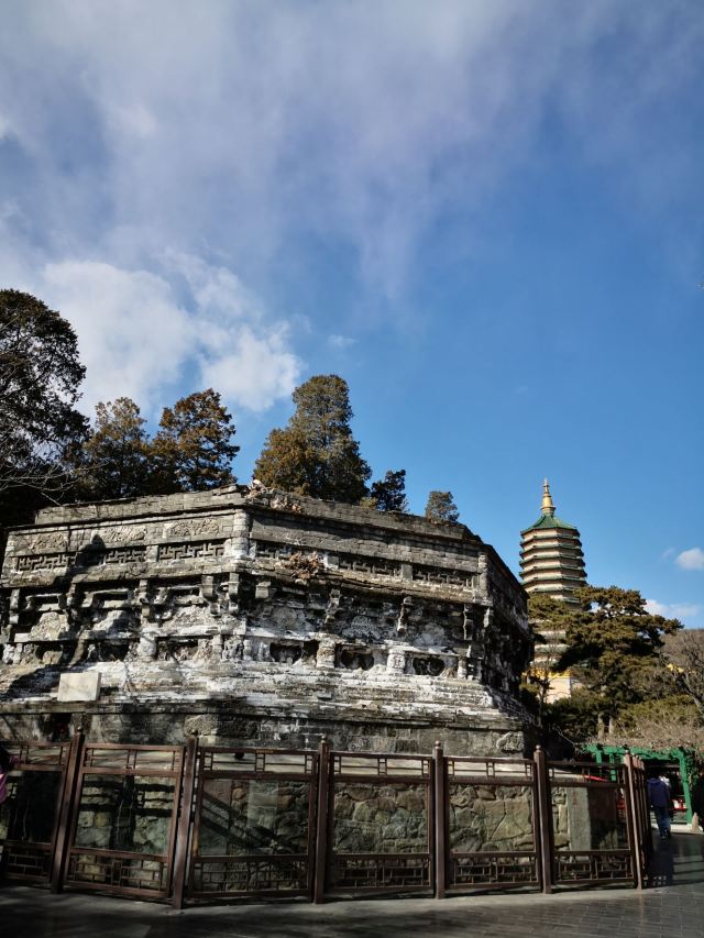 二处灵光寺建于唐朝,寺内供奉着一颗佛牙舍利,此舍利在全世界只有两颗,所以在佛教寺庙中非常有名,传说也十分灵验,所以灵光寺也是八大处公园内祈福较为集中的地方。