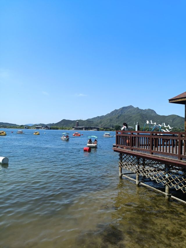 5分 超棒🌈🌈雁栖湖位于北京怀柔区,是一处风景优美的旅游胜地。这里三面环山,北面群山环抱,有着壮丽的自然景观。雁栖湖由东、西两个湖区组成,水面宽阔,湖面面积达到230公顷,环湖栈道长达14公里。
