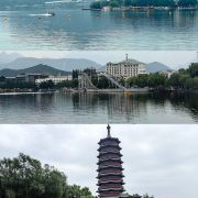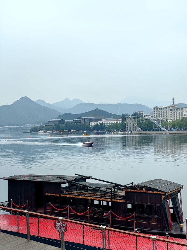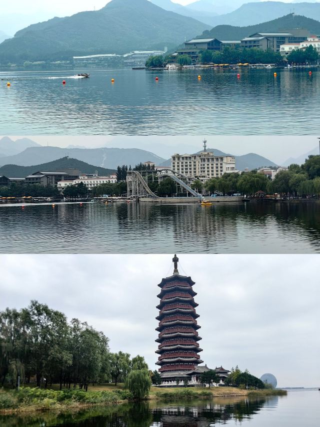 5分 超棒好久没有用心写游记点评了,感觉上一次还是在度蜜月的时候,难得今年的五一不用值班,没有各种叨扰的琐事,安心的带着宝贝出行。本来预想中不会太有趣,但到了目的地后就觉得风景真的不错,2号出发庆幸是个不错的时间点,两三个小时的车程,高速上也没有预想的辣么堵,虽然整个大乌龙,先去雁栖酒店打了个卡,不过这一路小风景是真的很不错哇。首先在小路上堵的时候就看到了日出东方,就是那个凯宾斯基啦,哈哈,很拉风的酒店,建筑风格很是非凡,不过腰包不太鼓,令我望而却步。从p5停车场小路上去,那样好一些,因为前边一直堵,这里可以直接停车,按次收费,很合理了,停了琪7个多小时才20,开始走错方向所以租了自行车骑行到东门取票处,说实话有点不值,坡大基本都得推着走一会。这个联票买的简直了,太值,进去后才发现真的别有洞天,各种风景打卡,游戏设施打卡,到的时候上午九十点钟,走的时候已经能见到夕阳彩霞了,宝宝也玩得很开心,迎着徐徐的风在快艇上体会浪花翻涌的乐趣,在红色主题广场上看孩童嬉戏,人群恬淡安宁,真的很享受。这次棒棒哒雁栖湖之旅,真的收获不错。景色不错,总体超赞,有趣好玩,性价比高,