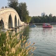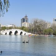 微信小程序玉渊潭公园是北京市区较大的公园,也是市民们放松漫步的好去处。这里有东、西两座大湖,湖边杨柳依依,景色非常优美。玉渊潭公园里还有北京市区很大的樱花园,每年3、4月份玉渊潭赏樱,是整个京城的热门活动。玉渊潭公园在东南西北几个方向均有入口,园内面积较大,长约有2公里,宽将近1公里。公园内部有众多景点,可以概括为北侧樱花园、中心处东西两大湖和南侧游乐观景区几个部分。游客进入园区后步行游览,一般游玩小半天左右。漫步樱花树下北侧的樱花园是公园内知名的景点,樱花园是一座园中园,也是北京市区很大的樱花园。园内种植了从日本引进的几千株樱花树。这些樱花品种不同,花期也有早有晚,可以接替开放,使得樱花园每年的3、4月份有一个多月的时间都能看到盛大的樱花,拍照观赏都十分合适。每到此时,玉渊潭公园内也会举办樱花节,附近会搭起很多小吃摊和特色的购物小摊,游人如织,十分热闹。不过届时公园的票价会上涨到10元,周末、清明等节假日也会有人山人海的情况出现。泛舟西湖中间两处大湖分别是东湖和西湖,两个湖泊的长度都在700米左右,周围有垂柳树木,远处的电视塔倒影湖中,环境非常优美。湖上有几处码头,可以划船游湖,船分为电动和脚踏两种,座位有4-6人不等,租船的参考价格在每小时60-120元不等,需要付200-400元左右的押金。除了乘船游湖外,在湖边散步也是不错的选择,每到傍晚时分夕阳西照,更是十分惬意。其它游玩项目湖南侧区域分为两部分,东边以观赏区为主,这里有留春园、景观大道等处可以游玩,有树木园艺、亭台楼阁等,类似园林风光。西边则有一些少儿娱乐项目,如碰碰车、花果山漂流、小游乐园等,每项收费一般在20元左右,适合带小朋友游玩的游客前来。而每年到冬天时,西边还会有一个雪上游乐园,可以体验滑雪圈、冰车、马拉雪橇等娱乐项目。