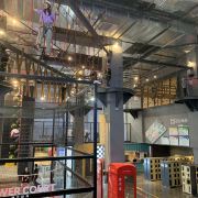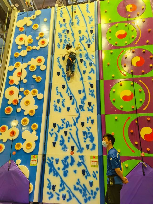 3分 不错就两个类似vr的设备其实并不是很好玩,有点花大钱办小事的感觉,完全没有发挥出场地和设备的价值,攀岩类爬高类小孩玩不了,太高了,有一定的危险系数,虽然有安全绳,但是如果左右摆动还是会产生坠落撞击的可能;游戏室很多都很无聊,比如狮吼功那个还有电子兵乓球跳舞机,这些傻到不行,花点钱换台日本进口的游戏机他不香吗?两台山寨跳舞机真是无力吐槽……