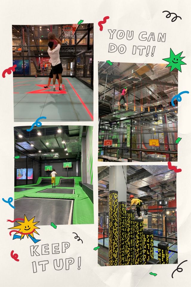 这里面有好多项目设备,保龄球🎳攀岩🧗🏻♂️蹦床🛏️羽毛球🏸篮球🏀射箭🏹射击手枪🔫滑梯🛝台球🎱种类真的是多种多样!玩儿了三个小时感觉时间过得飞快啊!就是离我们太远了,如果有机会还想再来挑战一下!
