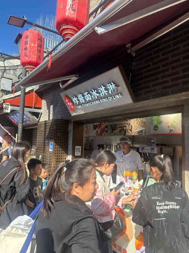 |千万别听人家说什么南锣鼓巷不值得去,想体验一下北京古巷的味道,又想吃吃逛逛,带着老小一家子,南锣鼓巷比其他古巷还是包容性更大,有一堆小吃,起码可以体验老北京文化的同时满足嘴巴。### 推荐小吃1. **炸酱面**:可以尝试传统的炸酱面,面条劲道,还有炸酱面冰激凌可以试试,偷偷告诉你,炸酱面冰激凌实际上是一种可爱的巧克力冰激凌🍨 2. **豆汁**:北京特色饮品,口感独特,适合勇于尝试的人,尤其豆汁冰激凌🍨可以排队试试。3. **冰糖葫芦**:外脆内甜的冰糖葫芦,特别适合拍照!当然北京的糖葫芦非常好吃!不接受反驳4. **吹糖人**:传统的北京小吃,老板做好了以后可以自己吹成型,比较有趣,💰30-40一个希望你能享受到美味的小吃!