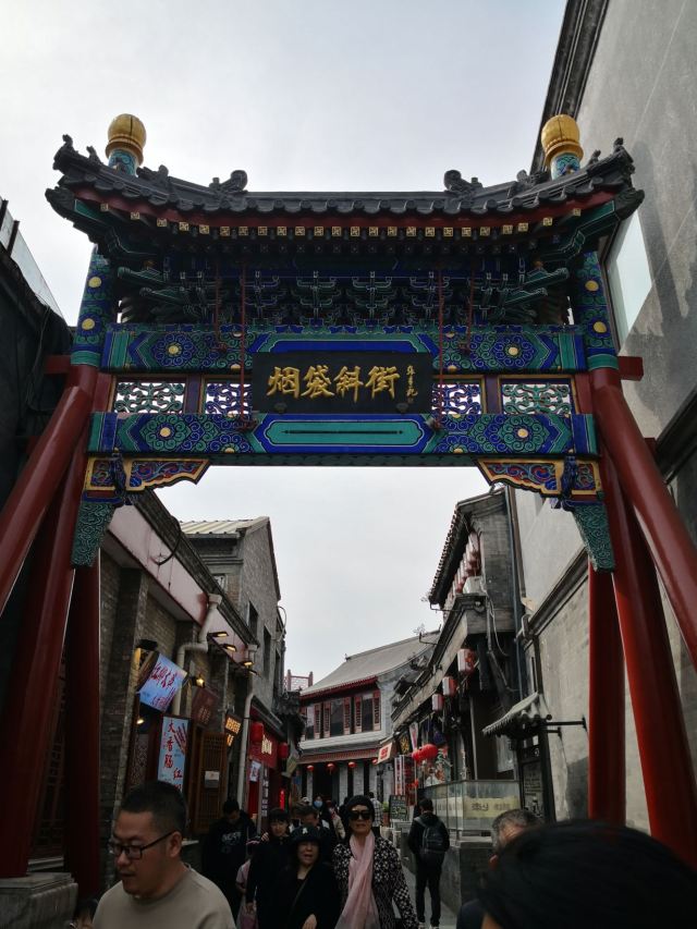 烟袋斜街特色商业街是北京较古老的的一条商业街,在清朝时主要经营烟具,装裱字画和贩卖古玩玉器,是一条繁华的商业街。在人潮涌动的街道上,游客时不时就会走到风格迥异的店铺面前,可能以前这些店面里面卖的就是名家字画,但是更多的是些具有特色小吃和民族气息十足的纪念品。