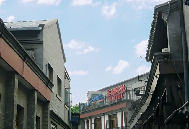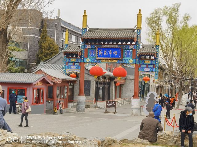 踏上烟袋斜街的石板路,首先映入眼帘的便是那古色古香的街景。街道狭长而蜿蜒,犹如一条静卧的巨龙,两侧的建筑飞檐斗拱、雕梁画栋,青瓦灰墙在岁月的侵蚀下略显斑驳,却更添几分古朴厚重之感。朱漆大门半掩,偶尔透出四合院中温馨的生活片段,让人不禁想象昔日里老北京人的起居日常。街边的幌子随风摇曳,有传统的布幌子,写着“酱园”“茶馆”等字样,也有造型别致的铜幌子,在阳光下闪烁着微光,它们宛如历史的指针,指向那些已经远去却令人怀念的旧时光。