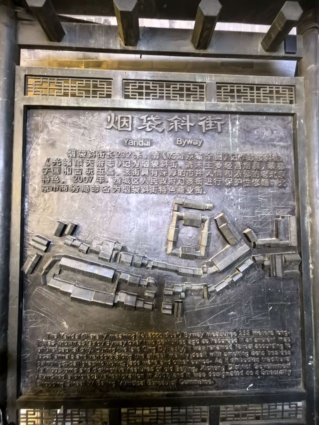 其实商业街本身就宛如一只烟袋。细长的街道好似烟袋杆儿,东头入口像烟袋嘴儿,西头入口折向南边,通往银锭桥,看上去活象烟袋锅儿。正是基于这两方面的原因,以“烟袋”命名斜街,真可谓名副其实了。