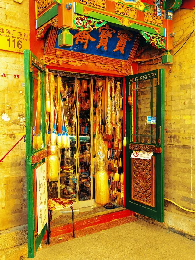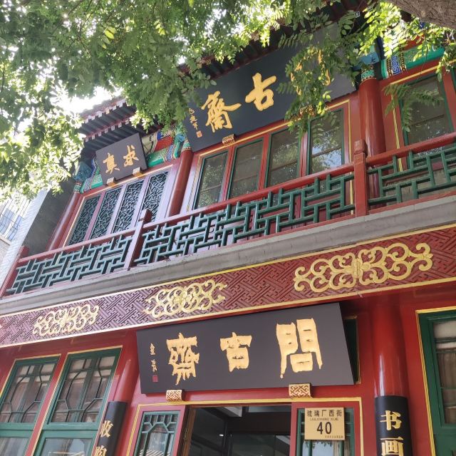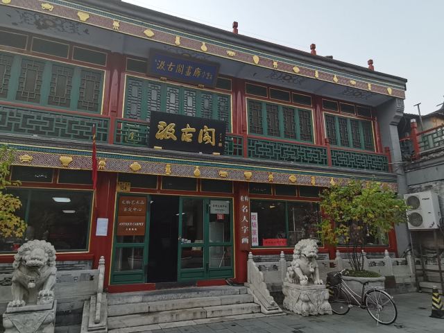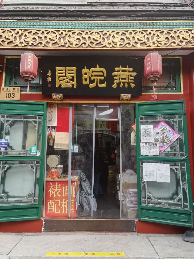 如今这里经营古玩字画的店铺依旧很多。沿街商店近100家,有以荣宝斋和宝古斋为代表的古今字画,以韵古斋和萃珍斋为代表的金石陶瓷,以来薰阁和一得斋为代表的文房四宝,以振环阁和震云阁为代表的珠宝杂项,以乐海轩和古艺斋为代表的音响乐器,以观复斋和庆云堂为代表的历代碑帖,以汲古斋和韫玉斋为代表的仿古文物,以瑞成斋和邃雅斋为代表的文物锦盒和古书装修,还有文盛斋的纱灯、宫灯和锦昌店的地毯、壁毯等。