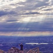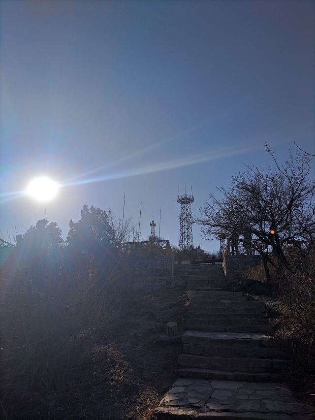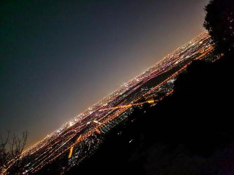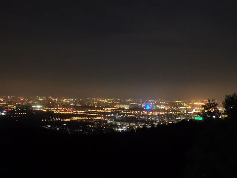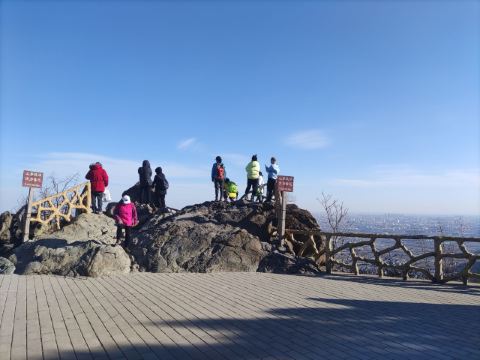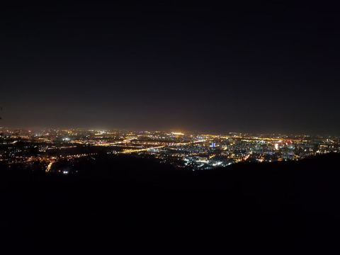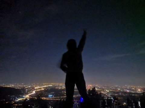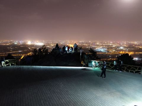 晚上都是过来拍照的,最佳位置(石头最凸起处)需要排队。一定要穿外套,山上风很大;来之前看天气预报,山上气候变化快,雨说下就下,雾霾天也别来了,看不清,最后是刚下过雨的时候来,效果拉爆;如果是从东门登山往返,建议拿个头灯或者其他照明工具,用手机一是费电,二是怕摔着手机;从停车场步行往返的话,手机照明就够了。