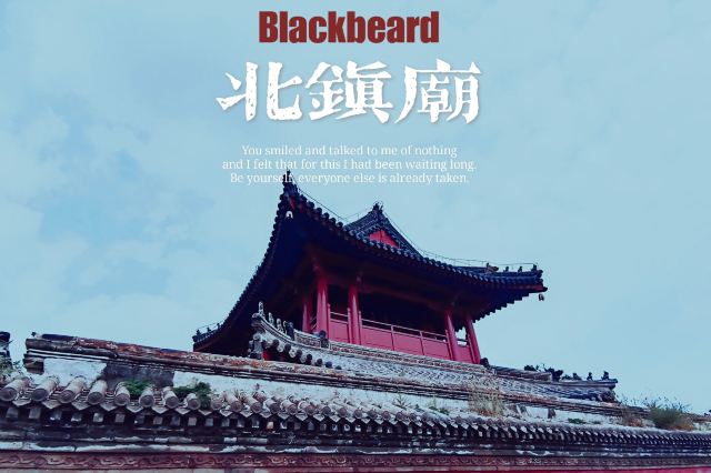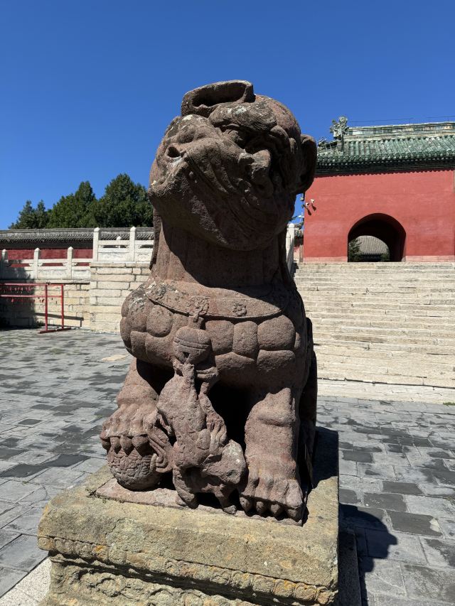 ✨山门,面阔三间,单檐歇山顶。明间匾额的“北镇庙”传为严嵩手笔。山门外的牌坊四周有四只石狮子,神态各异,颇值得玩味。