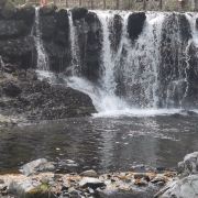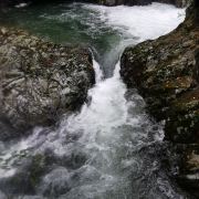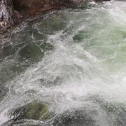 大石湖,以其五个次第相连的湖潭而得名,湖潭依次承接,瀑布飞溅掩映,故又称之为“五湖四瀑”。