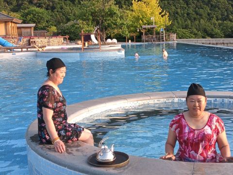 度假村内纯日式风格及各具特色、功能不一的温泉汤池多达40余个,1200平方米的室外缘溪无边温泉泳池,另有岩磐、休息等功能的休闲区和特色餐厅、多功能厅、会议室等。