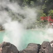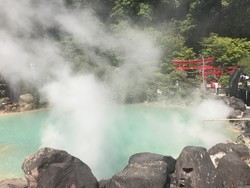 别府地狱是别府地区有名的温泉,被日本人票选为西日本第一温泉,其中受欢迎的当属八大地狱温泉。八大地狱温泉有海地狱、鬼石坊主地狱、山地狱、灶地狱、鬼山地狱、白池地狱、血池地狱和龙卷地狱。海地狱是其中大的一个,而有特色的一个则是血池地狱。它以“赤汤泉”闻名,泉水泛着血红色,被日本佛教徒认为是来自幽冥地狱中的激流。同样让人过目难忘的还有鬼山地狱,它又被称为“鳄鱼地狱”,里面的鳄鱼养殖场现在养着三种约百头鳄鱼。冬天的夜里饲养员每三小时巡逻一次,监视是否有鳄鱼从温泉中爬出。除此之外,白池地狱园里饲养的食人鱼也让闻之一惊,不过它吸引人的还是“变色水“,温泉里喷出的水重新落回池子时由无色透明变成青白色。地狱是日本古代对温泉的称呼,当地为了突出其温泉乡的历史悠久而保留了这个称呼。之所以把温泉称为“地狱”,是因为经过火山喷发后的地方烟雾腾腾、寸草不生,让人心生恐惧,与佛教中描绘的地狱场景极为相似。在别府,温泉水可以拿来制成罐装饮用汽水,免费的蒸气则直接被用来煮饭。当地人更是利用天然地热制作出一道有名的乡土料理——地狱蒸,烹饪方法极为简单,就是将新鲜的海鲜和蔬菜用高达100度的温泉蒸汽来蒸熟,附近的餐厅大多提供这种自助式烹饪的地狱蒸。