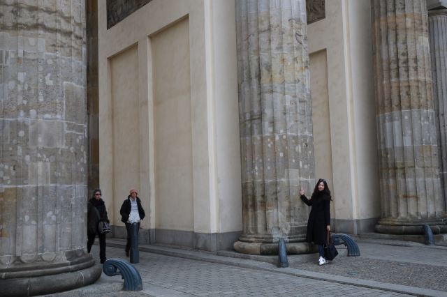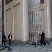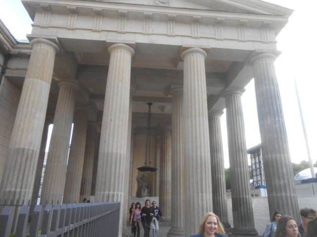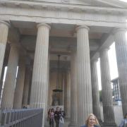 勃兰登堡门高26米,是一座新古典主义风格的砂岩建筑,以雅典卫城的城门作为蓝本。由12根柱子支撑着平顶,东西两侧各有6根,前后立柱之间为墙,将门楼分隔成5个大门,正中间的通道略宽,是为王室成员通行设计的,早先也只有王室和被王室邀请的客人才可以通过。