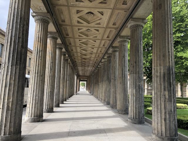 △ 柏林旧博物馆于1830年开馆,是博物馆岛上历史悠久的博物馆。这座博物馆承袭了新古典主义的建筑风格,正面由18根圆柱并列支撑,内部的主厅堂呈球形,上方巨大的圆形拱顶十分抢眼。旧博物馆展出了古希腊及罗马的艺术珍品,展品内容十分丰富。