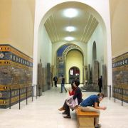 △ 佩加蒙博物馆可谓是博物馆受欢迎的一座,它也是世界著名的考古博物馆之一。这幢灰色的建筑外观庄严大气,很容易让人联想到各色古代建筑。由中央门进入后,左边是古罗马及希腊藏品陈列馆,右侧是古西亚展览馆,二层是伊斯兰文化展示区。其中镇馆之宝——佩加蒙宙斯大祭坛(Pergamon-Altar)不容错过,祭坛历史可追溯到公元前2世纪,祭坛高9.66米,台座部分的神像雕刻十分精美。此外,公元前二世纪左右的小亚西岸密列特的市集大门和巴比伦的依舒塔尔城门也很值得一看。