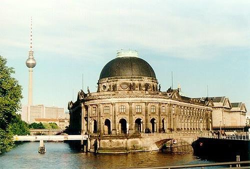 △博德博物館位于博物馆岛的外侧,建于1898年-1904年间,这座巴洛克式建筑采取了三角形的排列方式,馆内包含了3所独特的小博物馆:德国的拜占庭艺术博物馆,集结了拜占庭帝国时期的各种艺术精品;货币博物馆中展出了50万件古钱币展品,雕刻博物馆内则收藏了德国首屈一指的中世纪雕刻珍藏品。