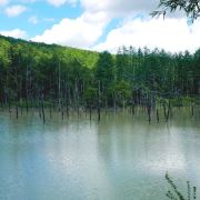 清池是一处水面泛着青蓝色的池塘,四周森林环抱,池塘里有枯死的落叶松树干,这里也被很多游客称为日本的“小九寨沟”。清池曾经被国家地理的摄影师所拍摄,作品被苹果公司购买,成为MAC操作系统的默认桌面之一。据说这里的池水,因为十胜岳火山喷发,而含有大量的铝元素,由于光的散射,阳光越强,蓝色越耀眼。距离青池大约2.45公里的白金温泉,是著名的温泉疗养地,可以一并游玩。