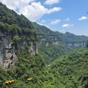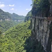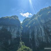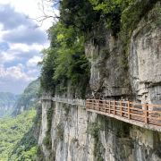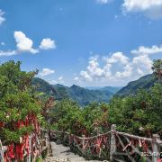 4分 满意景区景色是好的,只是比较费腿。从雨冲乡方向到景区路还不错,只是雨后有几处塌方,还算运气好路刚好已疏通。到游客中心后,左边走仙宇峰,右边走玻璃栈道,我们先去的玻璃栈道,下坡走到半山腰的栈道,景色不错的,能看到斜对面的仙宇峰,走完两段玻璃栈道,如果没买索道票可以原路返回到游客中心。已买索道票的需要一直下山到坡底的索道下站,费腿,再坐索道返回游客中心。在下山快要到索道下站时,有路标指示能上山到对面的仙宇峰,这条路应该是大陡坡,对体力要求会很高。从游客中心到仙宇峰,先走一段平缓步道,下一段儿山然后再上山到仙宇峰,峰顶有个小庙。从仙宇峰也能看到山对面的栈道,最后需原路返回游客中心。