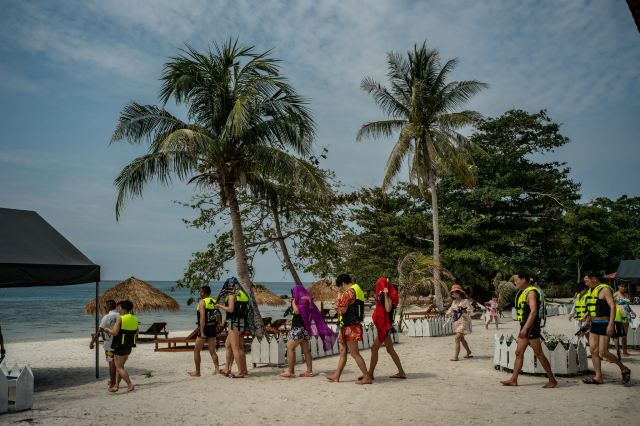 这是位于民丹岛的海滩,这里风景优美,水质清澈,还有白色的沙滩,是个度假的好地方。
