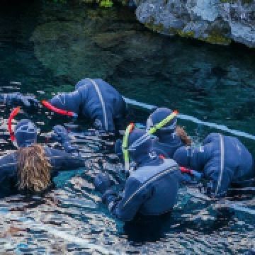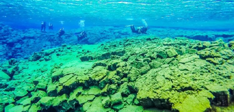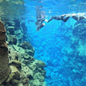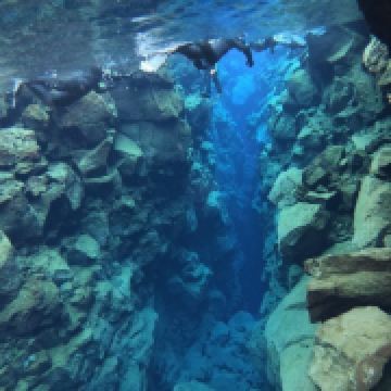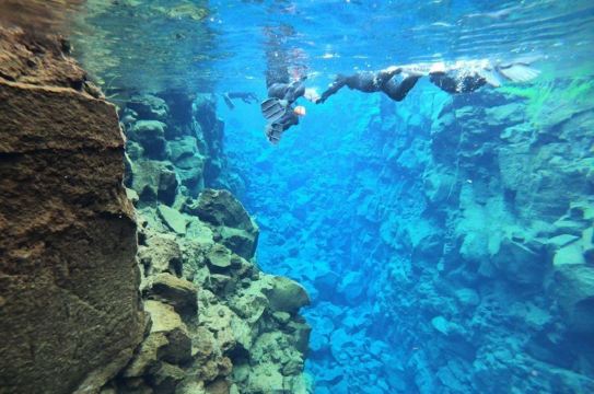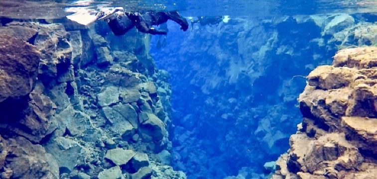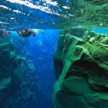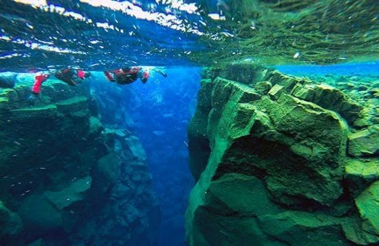 Silfra大裂缝在辛格韦德利国家公园内,底部延伸至议会湖,缝隙间充满了清透见底的湖水。在这里有浮潜和潜水的项目,在专业人员的带领下可以探秘两大板块间的水底世界。
