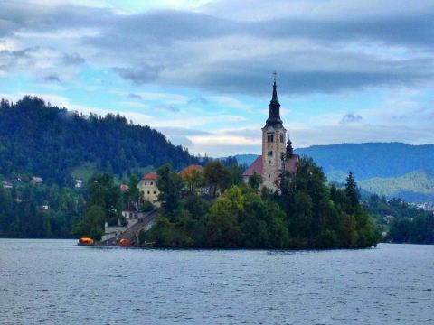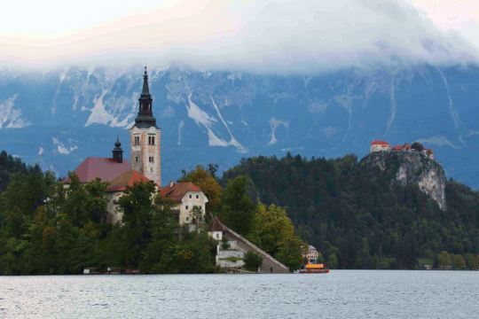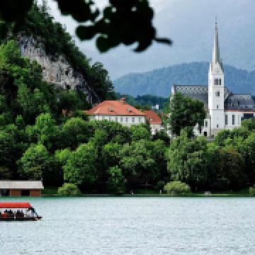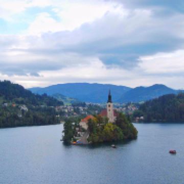 布莱德湖是斯洛文尼亚知名的湖泊,大约在一万多年前由阿尔卑斯山脉的冰川地质移动而形成,所以有“冰湖”之称。这里四周是高山,中间是湖,景色如同仙境一般,湖中的教堂仿佛海市蜃楼,非常美妙。
