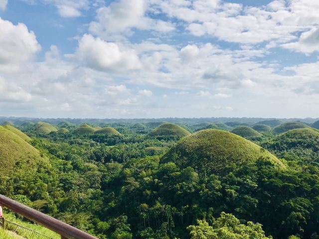 5分 超棒我是自己骑着摩托车从塔比拉然市一路开过去的,一路上看到的麦田和山包已经美不胜收了,看到巧克力山更为惊艳。本来在照片上看的时候并无太大震撼和期待,但是用眼睛看到实物真的让我震撼到了,这些可爱规整的小山包实在太美丽!!!!特别是可以在山顶上环顾四周,俯瞰小岛,小岛真的好大。