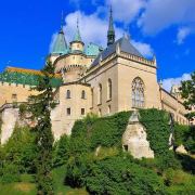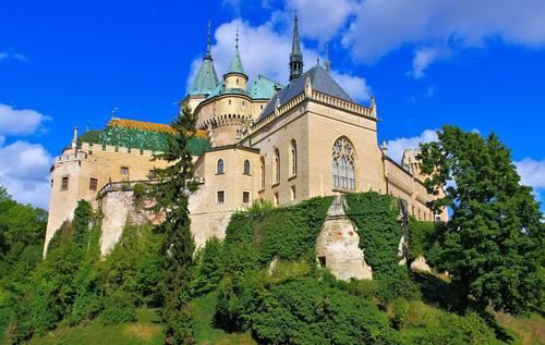 它是斯洛伐克较漂亮豪华的城堡,矗立在在茂密森林中,细长的圆柱高塔从森林里窜出,线条优美的尖顶,造型梦幻,色彩粉嫩的城堡是迪士尼中睡梦人城堡设设计的原形。城堡建于12世纪,是结合罗马式、哥德式与文艺复兴式的建筑。