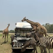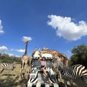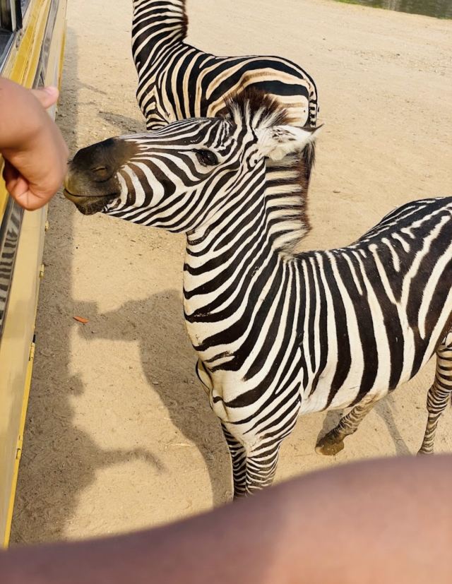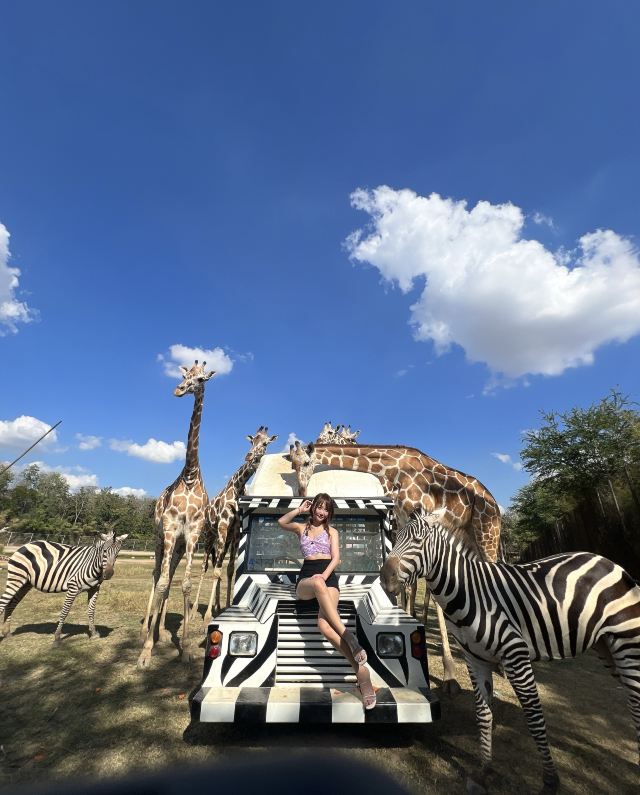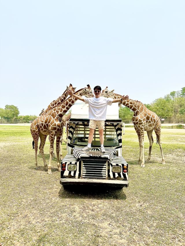 最惊喜的是,在这里拍到了许多自然又生动的"人生照片"——长颈鹿低头吃我手中食物的瞬间、小猴子跳上肩膀的调皮模样,这些都是在国内动物园很难获得的体验。园区还贴心地设置了多个遮阳休息区,并提供免费饮用水,让游客在游玩时不会太辛苦。