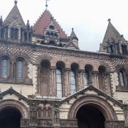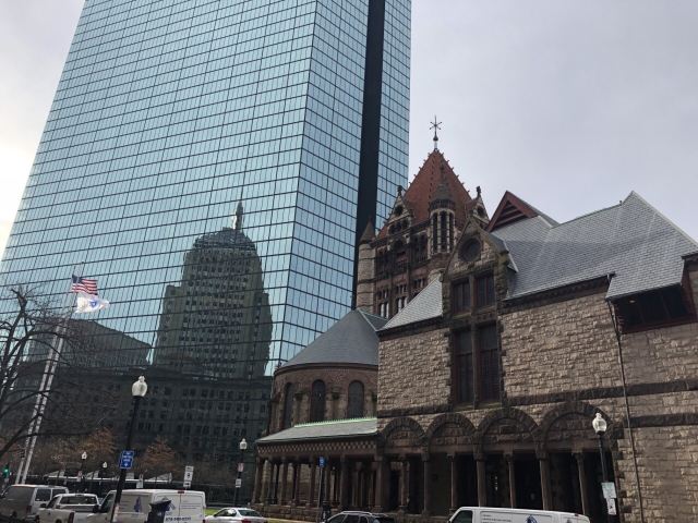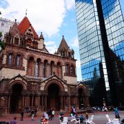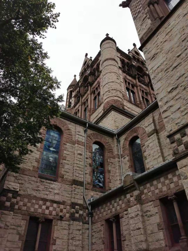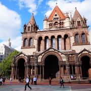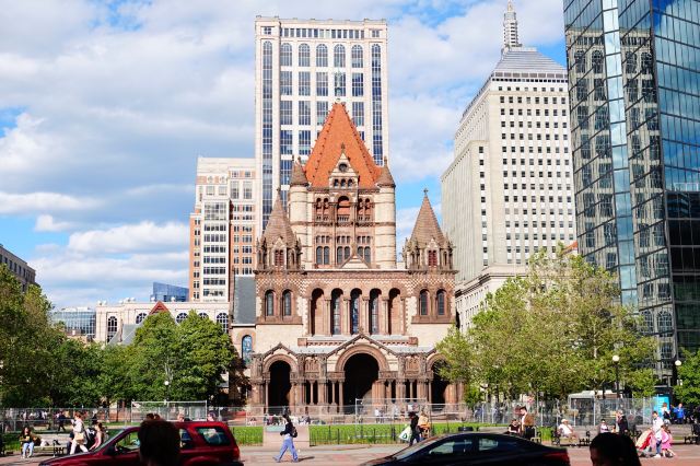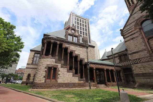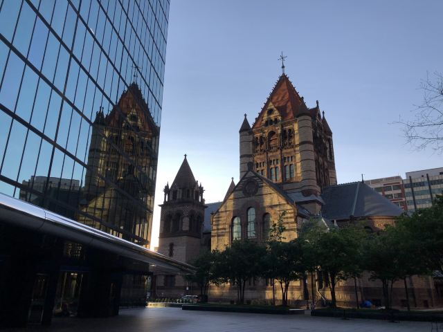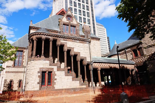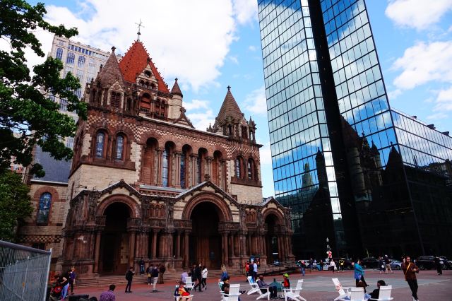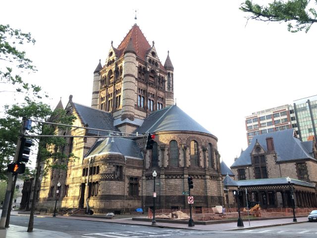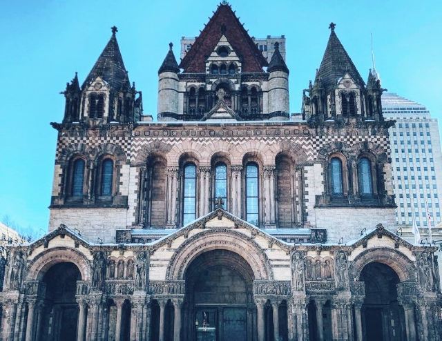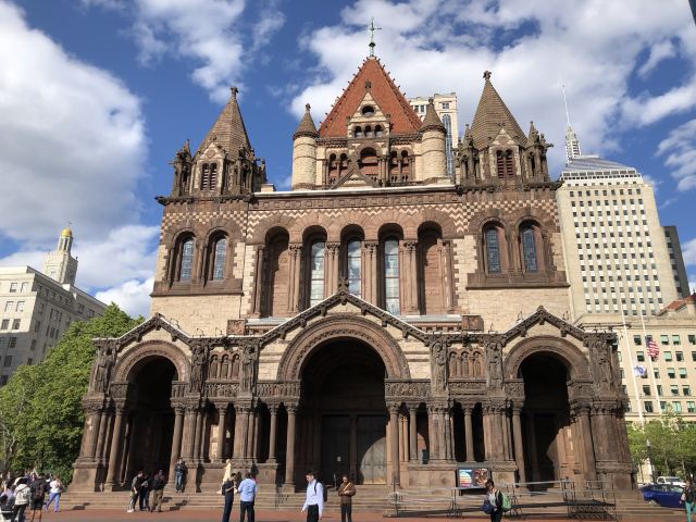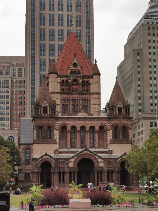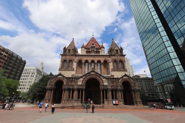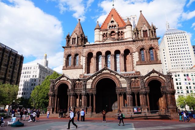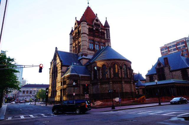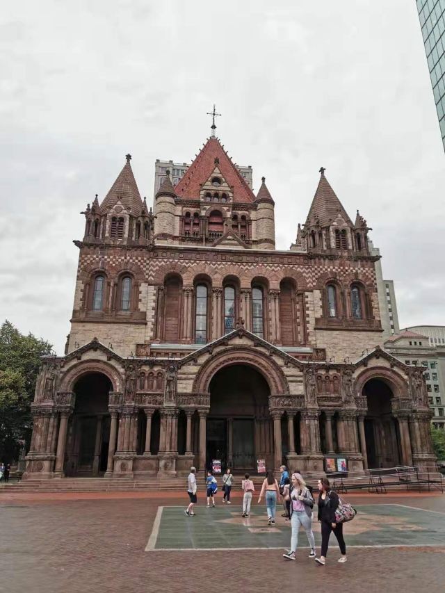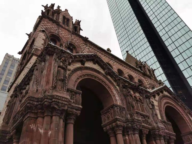 波士顿三一教堂的玫瑰色砂岩外观独具魅力。