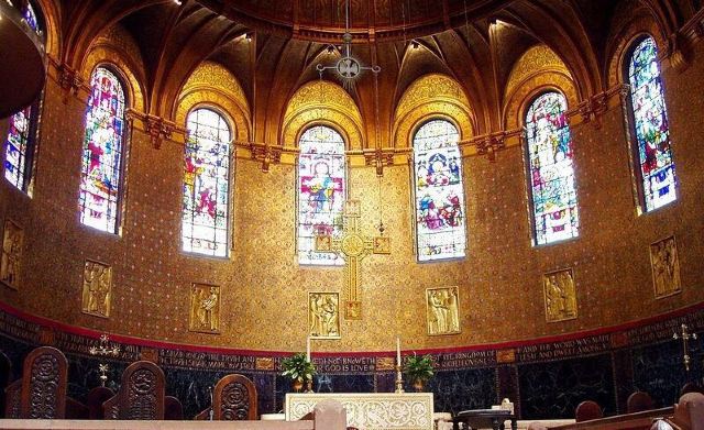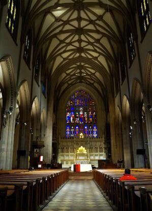 三一教堂(TrinityChurch)奠基於一七三三年是一座典雅的哥德复古式的教堂,教堂里面也是古色古香。