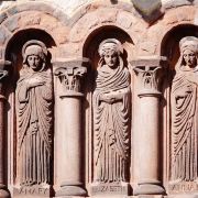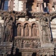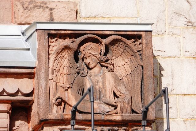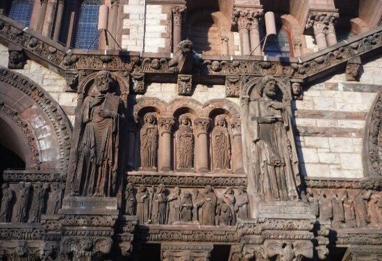 这种玫瑰色砂岩在阳光下色泽柔和且温暖,给人以庄重又不失温馨的感觉。它的质地坚硬,经过岁月洗礼依然能保持良好状态。砂岩上有着精美的浮雕装饰,这些浮雕细致入微,图案包括宗教人物、象征符号等,为建筑增添了浓厚的宗教氛围和艺术美感,使教堂外观在庄严肃穆的同时,展现出精致华丽的一面。