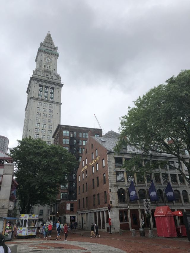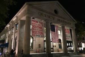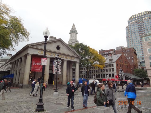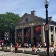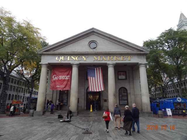 昆西市场是波士顿有名的旅游景点和购物景点。1822年波士顿的商业活动超出了法尼尔厅所能负荷的限度,向外扩张进而形成了如今昆西市场。昆西市场的特色在于其独特的罗马式建筑风格,大型圆柱和标志性的三角式的屋顶、前后门的经典罗马雕刻大门以及花岗岩建材与现代美式风格的矩形玻璃,成功地将古典美与现代美合二为一。