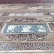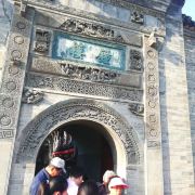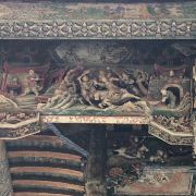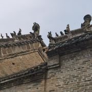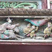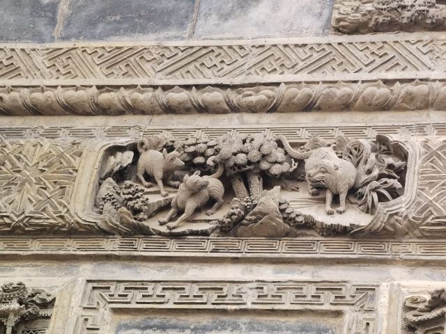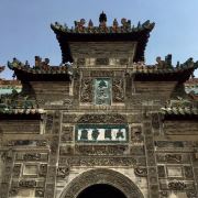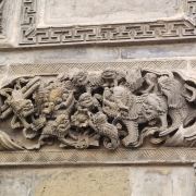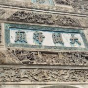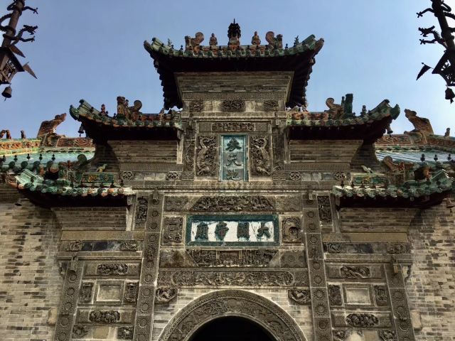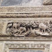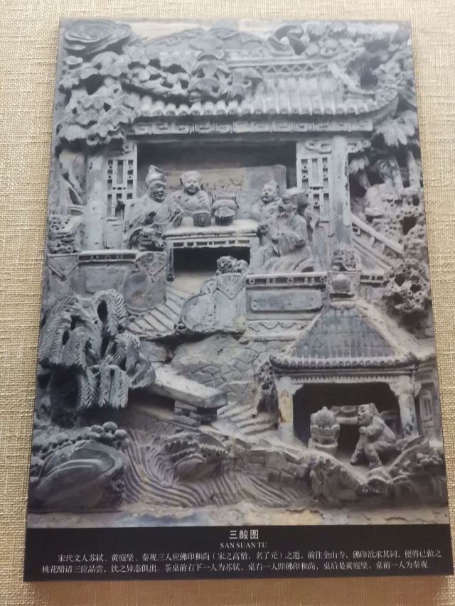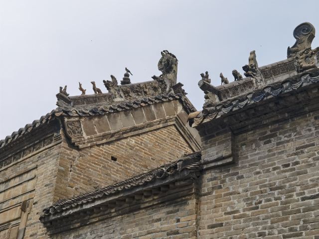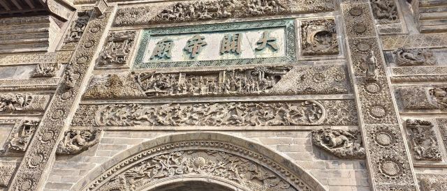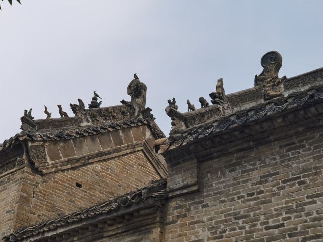 花戏楼有 “三绝”:正门前两根旗杆, 花戏楼的木雕和山门。花戏楼的砖雕巧夺天工,属徽派微雕艺术。