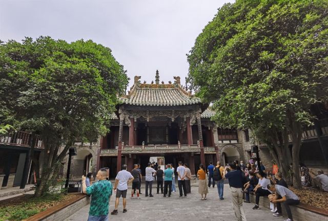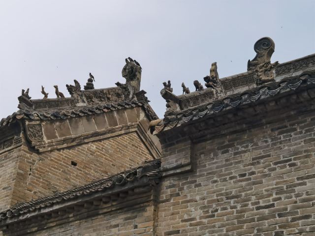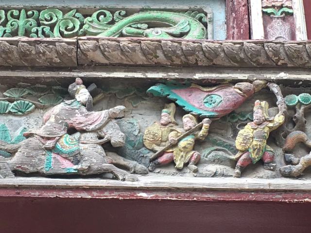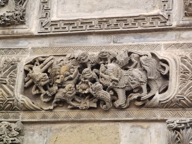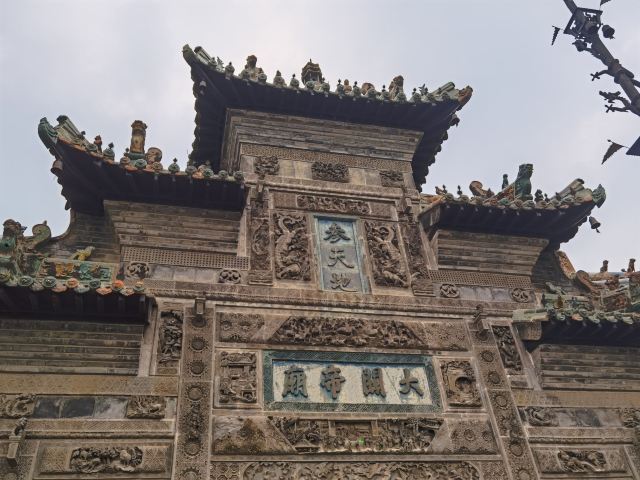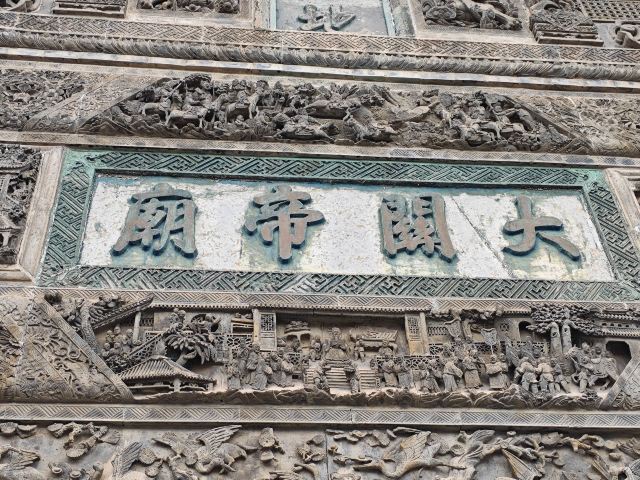 ❷砖雕宇宙:大关帝庙山门整墙立体砖雕,《白蛇传》《郭子仪拜寿》…300+人物栩栩如生,阳光下每一寸都是故事。