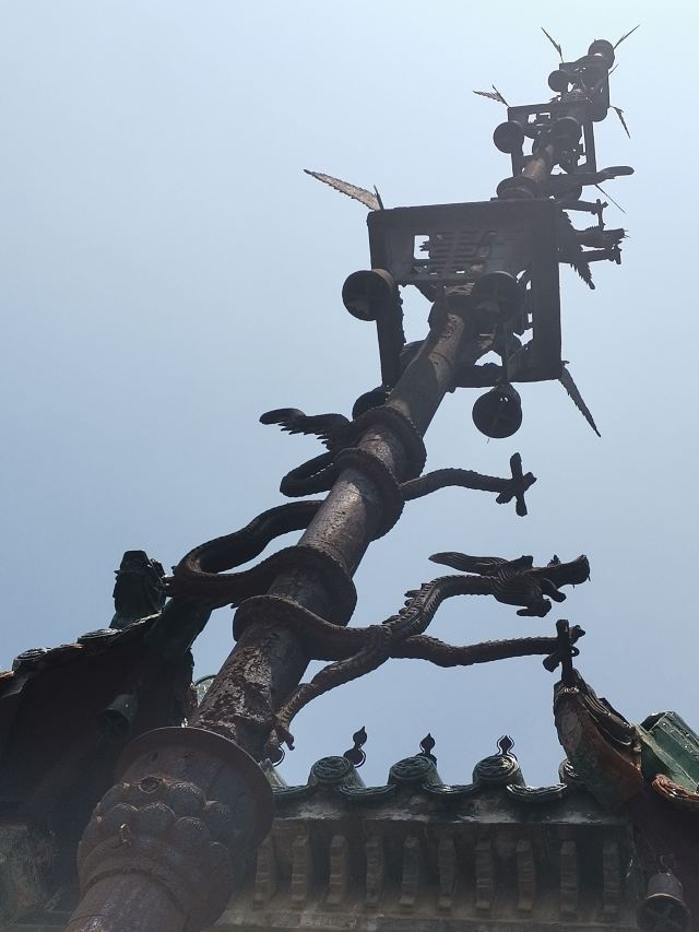 ❶ 铁旗杆冲天:16米高的清代铸铁双旗杆,龙鳞纹路清晰可见,顶端凤凰展翅,风起时铃铛轻响,瞬间穿越!