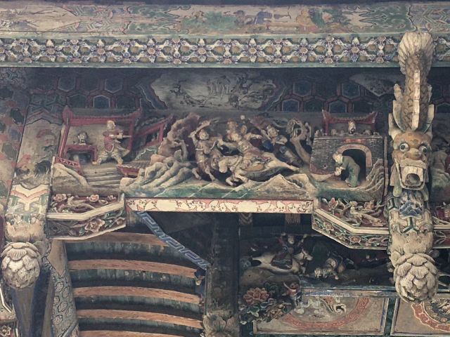 花戏楼又称山陕会馆,大关帝庙。是明清时期山西、陕西商人聚会的地方,历史悠久,因关羽是山西人,因此他们在此建关公庙。花戏楼精致漂亮拥有许多乾隆年间的绚丽的彩绘和精湛的雕刻,是全国重点保护单位。