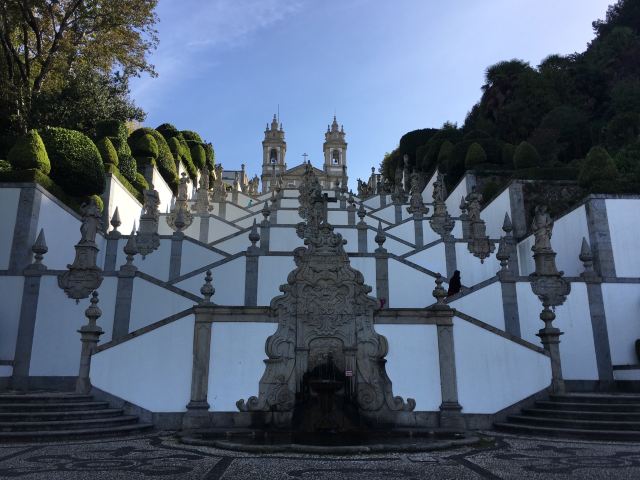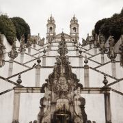 山上仁慈耶稣朝圣所位于葡萄牙北部布拉加市郊的埃斯皮诺山上,是一座历史悠久的罗马天主教朝圣地。其很有名的特色景点是宏伟的之字形巴洛克台阶,爬升高度达116米,沿途设有多座小礼拜堂、喷泉和雕塑,描绘耶稣受难的场景。这座朝圣所始建于14世纪,现存建筑主要建于18世纪至19世纪初,融合了巴洛克和新古典主义风格。其中,知名的“五感台阶”通过喷泉象征视觉、听觉、嗅觉、味觉和触觉,体现了宗教与艺术的结合。为方便游客登顶,1882年建成了伊比利亚半岛较早的缆车之一,至今仍在运行。2019年,山上仁慈耶稣朝圣所被列入联合国教科文组织世界遗产名录,成为布拉加的重要文化地标。