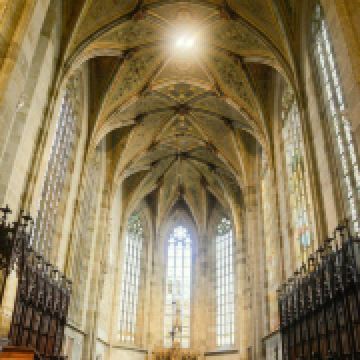 教堂修建于14世纪,是一幢经典的哥特式教堂,其有名的特点——高耸的尖顶也在该建筑中体现出来,高约16米。教堂内拥有三个大小相等的通廊,为前来礼拜的人提供了广阔的空间和明亮的灯光,教堂的室内构造和装饰也十分值得一看,拱形的穹顶给人肃穆感,还有很多精美的雕塑。
