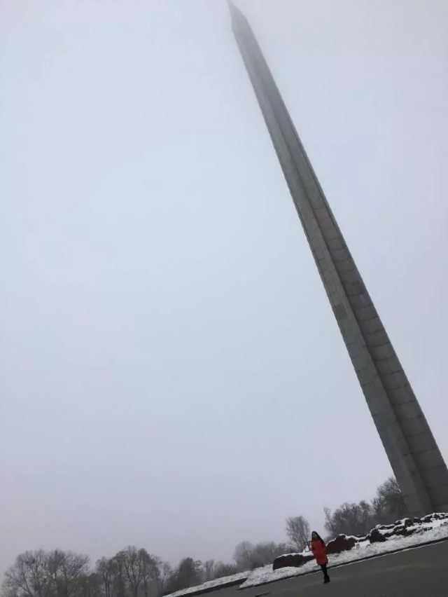 冬季为这里更添加了严肃冷寂的氛围。那天灰沉沉雾蒙蒙的,塔碑高高矗立,与天相接。