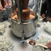 博物馆有中文讲解器,翻译得很好。从巧克力的起源,生产制作到未来,瑞士巧克力产业的发展等,讲解得非常细致,最后提出了非常有深度的思考问题,充满了ESG理念。里面有巧克力畅吃,真的随便拿,敞开吃,对巧克力爱好者来说太爽了。所以一定要带瓶矿泉水进去,一定要带,一定要带水,重要事情说三遍,不然最后会很腻。最后有一列经典的圆形巧克力,各个口味可以免费拿一颗带走,也有人多拿的。下楼前还有一个很好玩的游戏可以用门票扫码玩,玩好了有一块巧克力奖励。