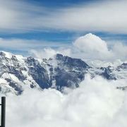 缆车终点为海拔2970米的雪朗峰观景台,这里是007电影取景的地方。雪朗峰四周有无数座雄伟的山峰,极目远眺就能看到同样位于这片群山之中的少女峰、艾格峰和莫希峰。