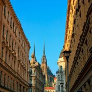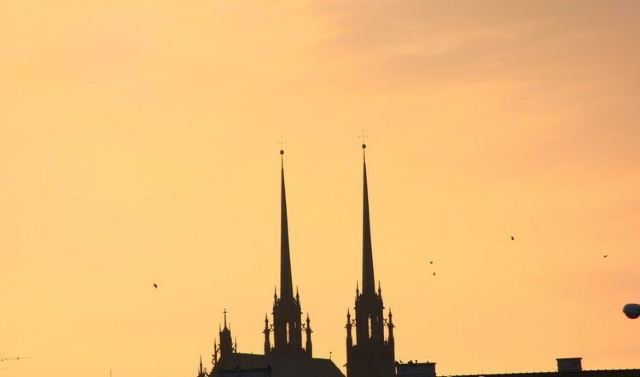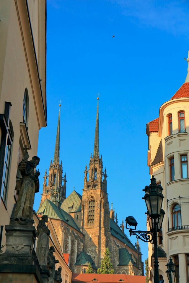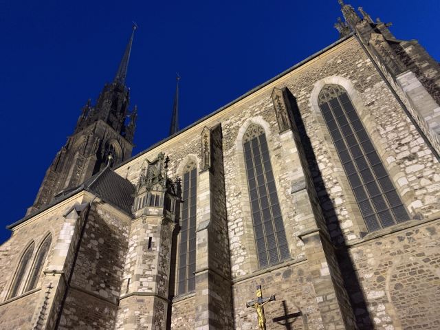 3分 不错布尔诺是捷克第二大的城市,这个大教堂就是城市的地标,大教堂非常的宏伟,有一个对称的高高的尖顶,当天还碰到了婚礼,也沾沾喜气,不错。
