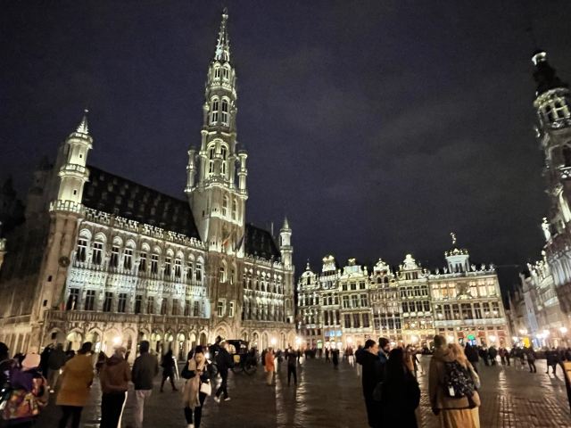 除了欣赏精美大气的建筑外,布鲁塞尔大广场的夜景也是一大亮点,华灯初上时所有建筑上的壁画和雕刻都熠熠生辉,是拍摄夜景的好地方。